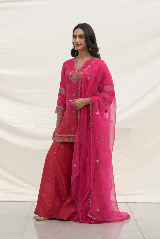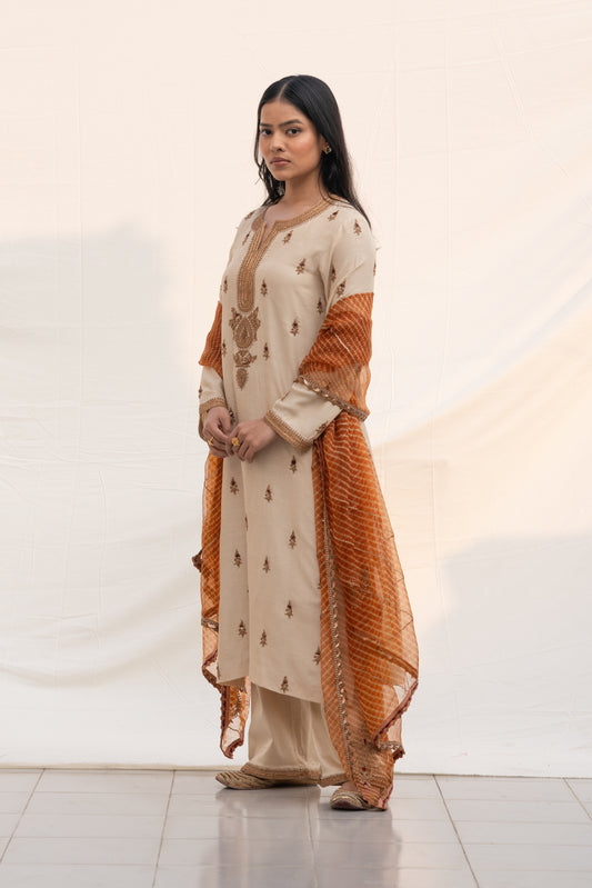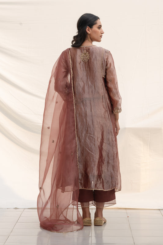 ROSY NUDE SILK TISSUE KALIDAR SUIT SET