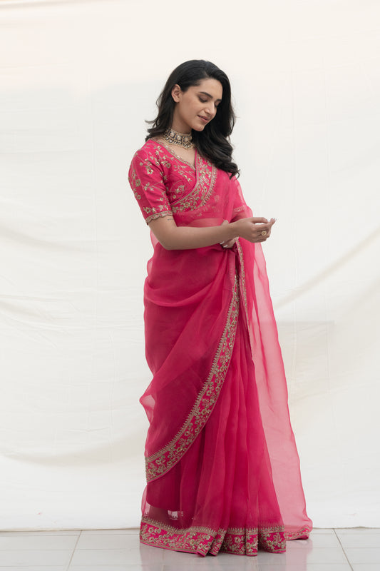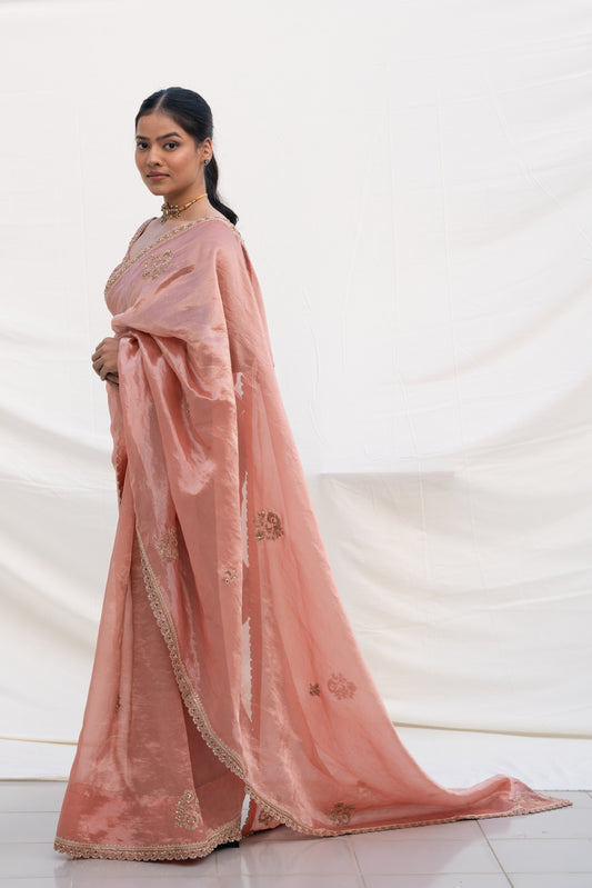 TEA ROSE SILK TISSUE ORGANZA SAREE