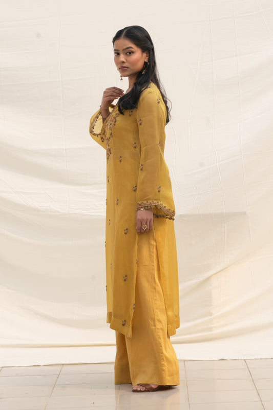 BISCOTTI YELLOW SILK ORGANZA KURTA SET